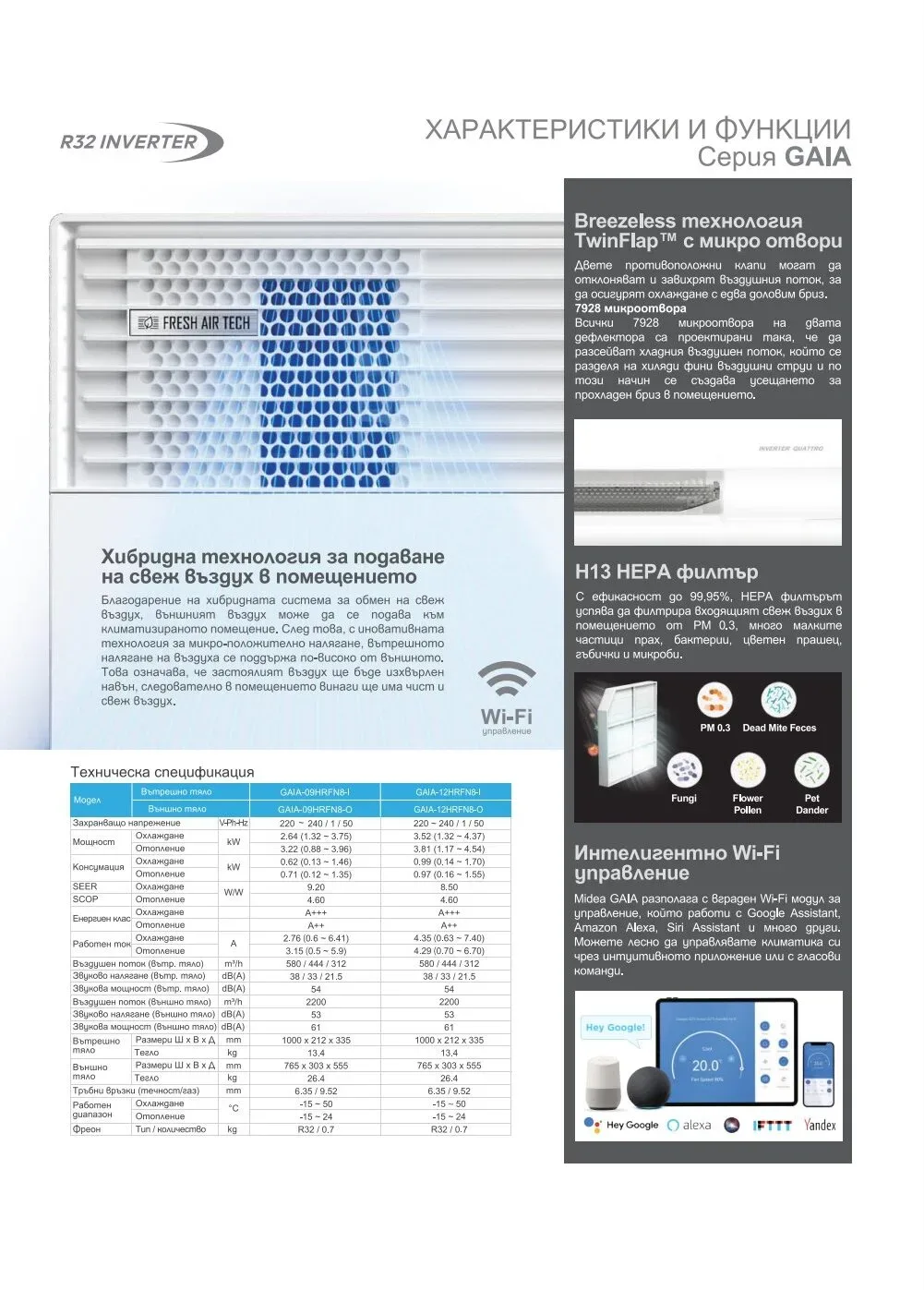 The Midea Gaia wall-mounted inverter air conditioner is rated A+++ for cooling and A++ for heating. Thanks to the hybrid fresh air exchange system, external air can be supplied to the air-conditioned room. Then, with the innovative micro-positive pressure technology, the internal air pressure is maintained higher than the external pressure. This means that stale air will be expelled outside, ensuring that the room always has clean and fresh air.